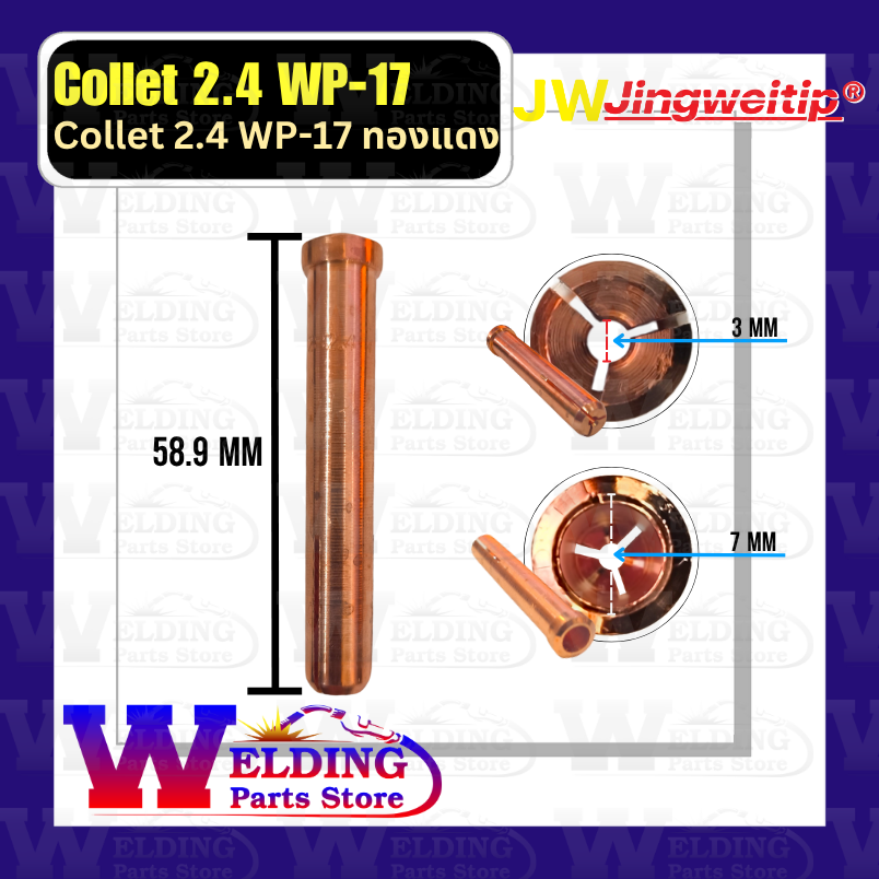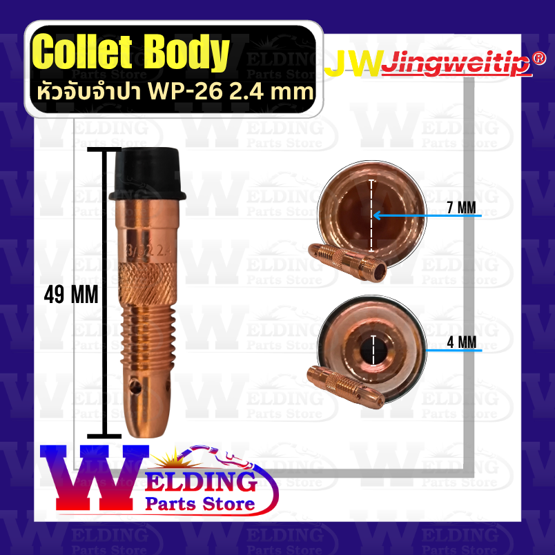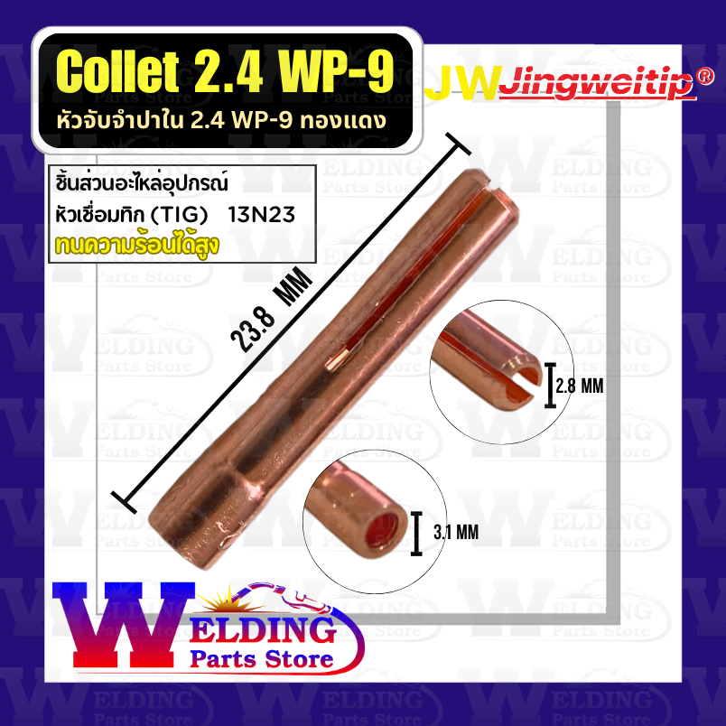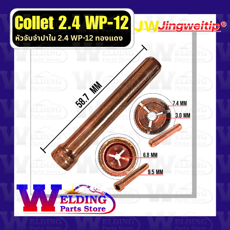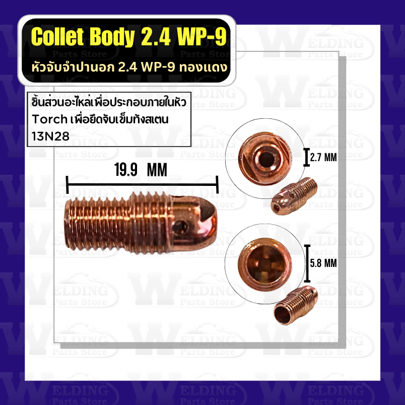 หัวจับจำปาในขนาด 2.4 สำหรับหัวเชื่อม TIG รุ่น WP-9 ทองเเดง สามารถทนความร้อนได้สูง