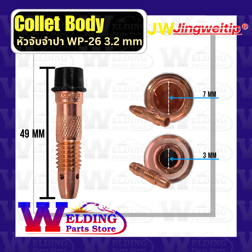 หัวจับจำปานอกขนาด 3.2 สำหรับหัวเชื่อม TIG รุ่น WP-26 ทองเเดง