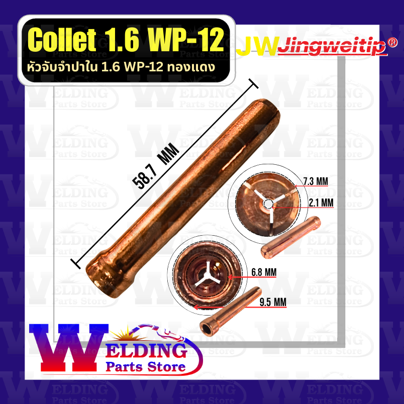 หัวจับจำปาในขนาด 1.6 สำหรับหัวเชื่อม TIG รุ่น WP-9 ทองเเดง สามารถทนความร้อนได้สูง