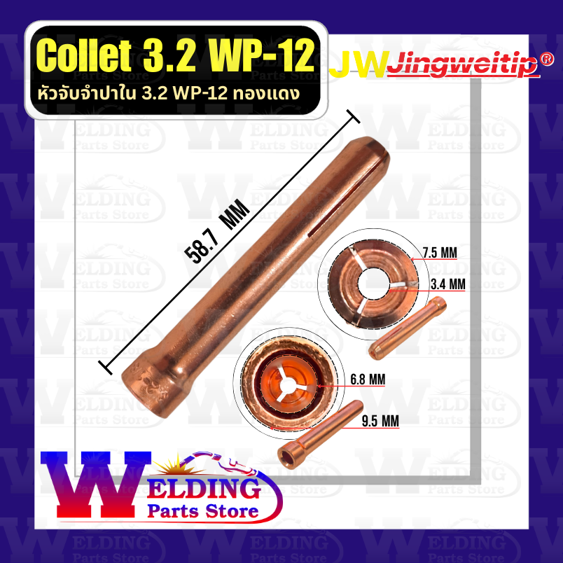 หัวจับจำปาในขนาด 3.2 สำหรับหัวเชื่อม TIG รุ่น WP-12 ทองเเดง