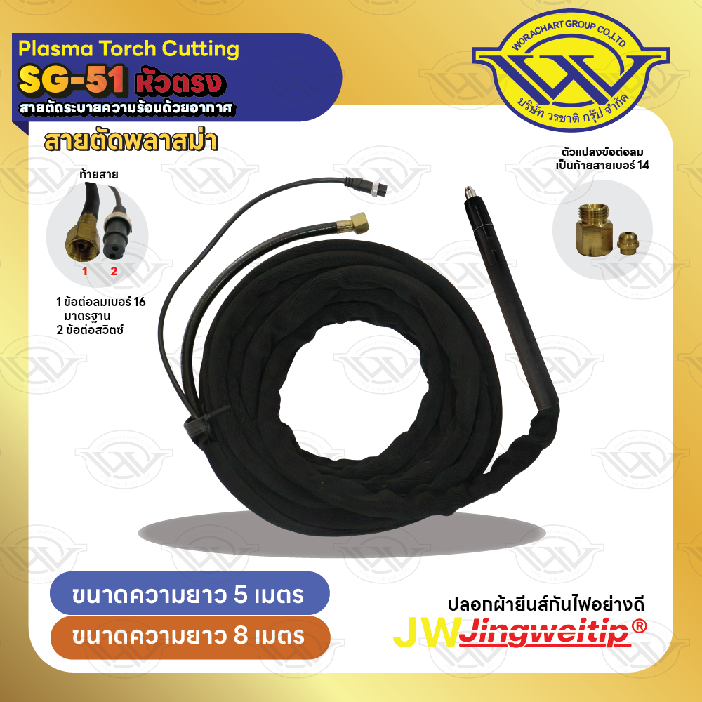 สายตัดพลาสม่า SG51 หัวตรง ความยาว 5 เเละ 8 เมตร