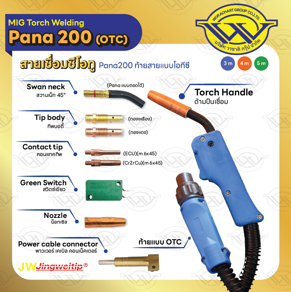 สายเชื่อม MIG CP-200 ท้าย OTC ความยาว 3, 4, 5 เมตร