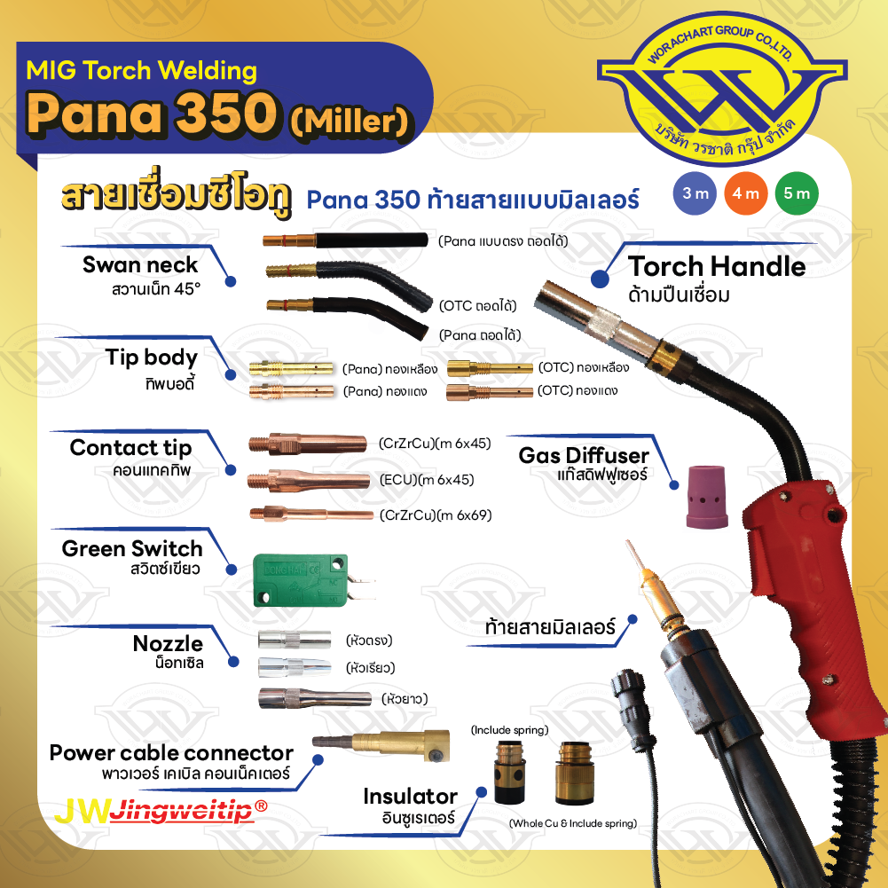 สายเชื่อม MIG CP-350 ท้าย Miller ความยาว 3, 4, 5 เมตร