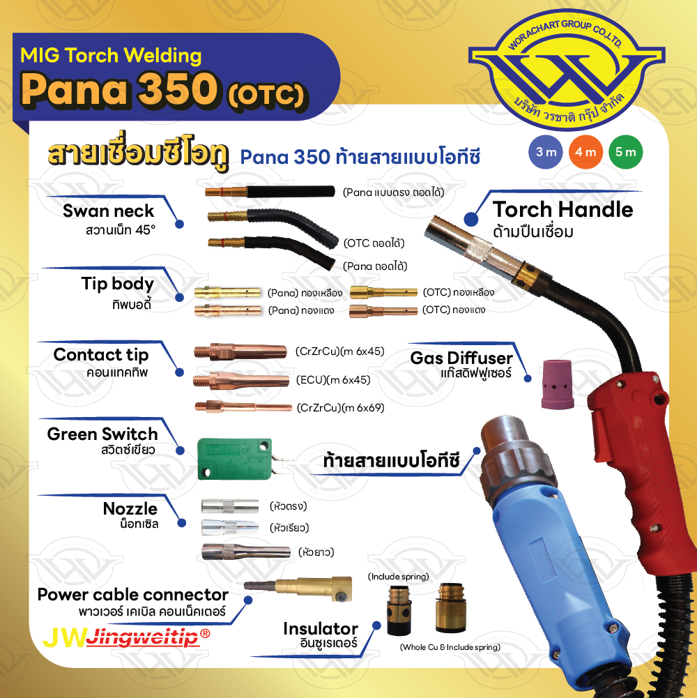 สายเชื่อม MIG CP-350 ท้าย OTC ความยาว 3, 4, 5 เมตร