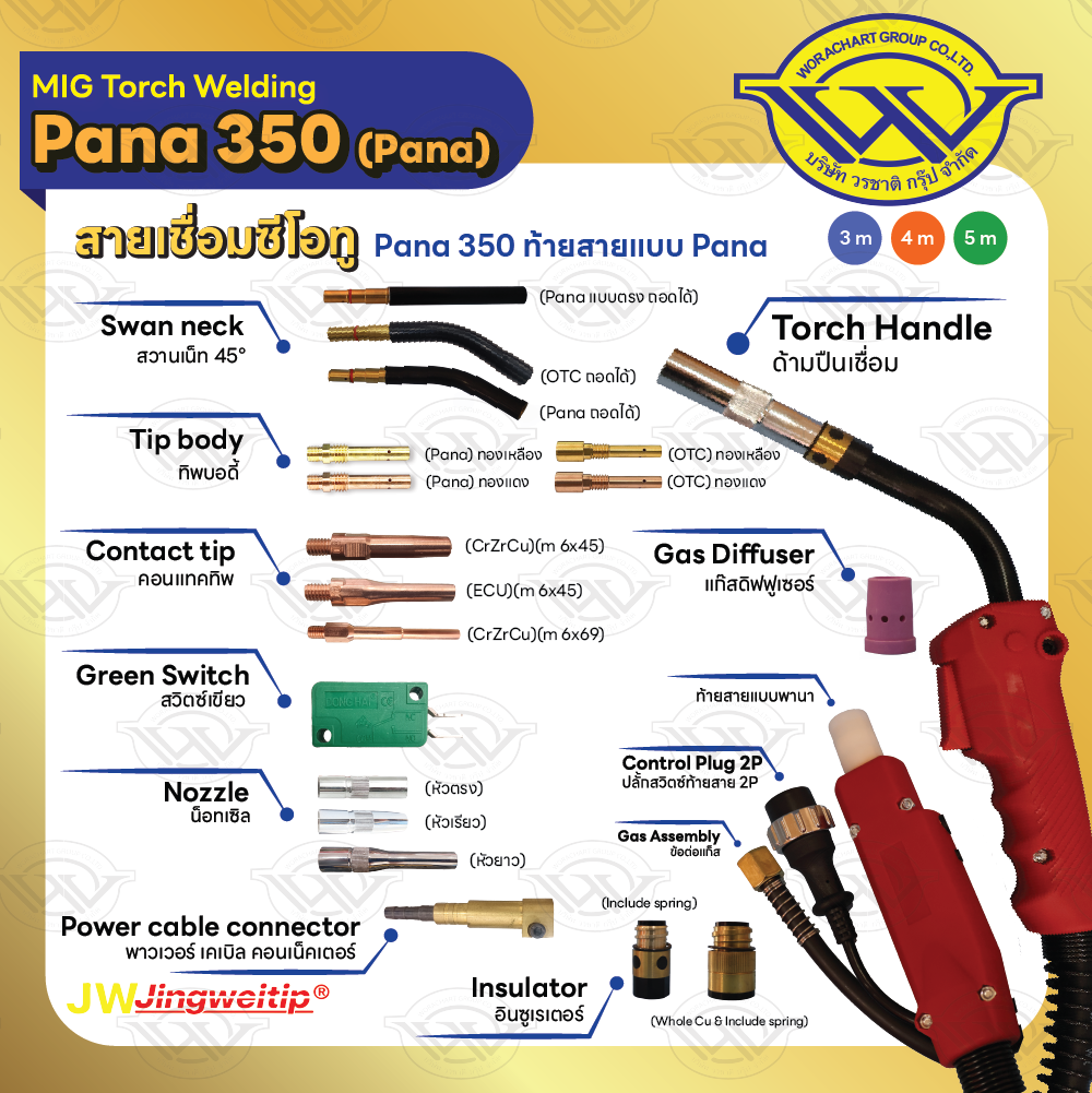 สายเชื่อม MIG CP-350 ท้าย PANA ความยาว 3, 4, 5 เมตร