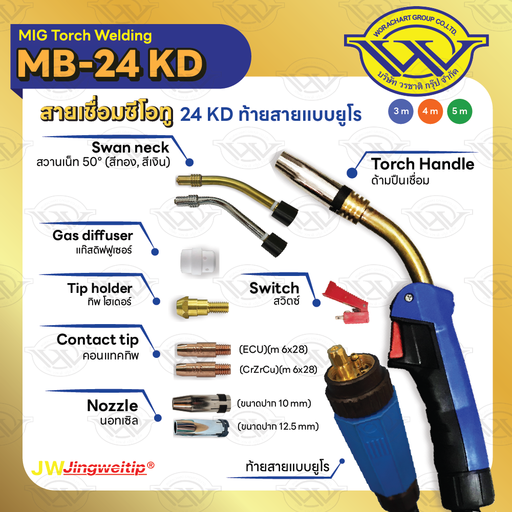 สายเชื่อม MIG MB-24KD ท้าย EURO ความยาว 3, 4, 5 เมตร