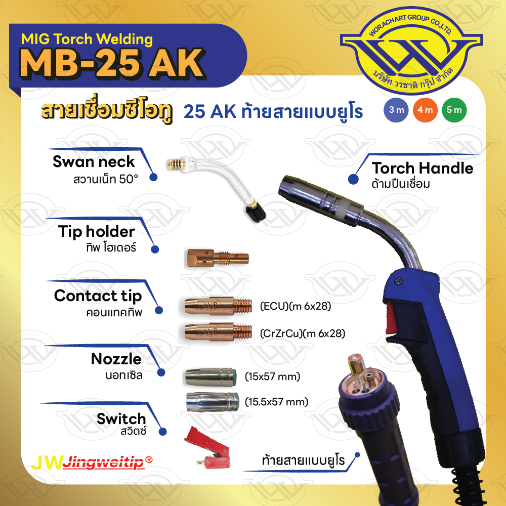 สายเชื่อม MIG MB-25AK ท้าย EURO ความยาว 3, 4, 5 เมตร