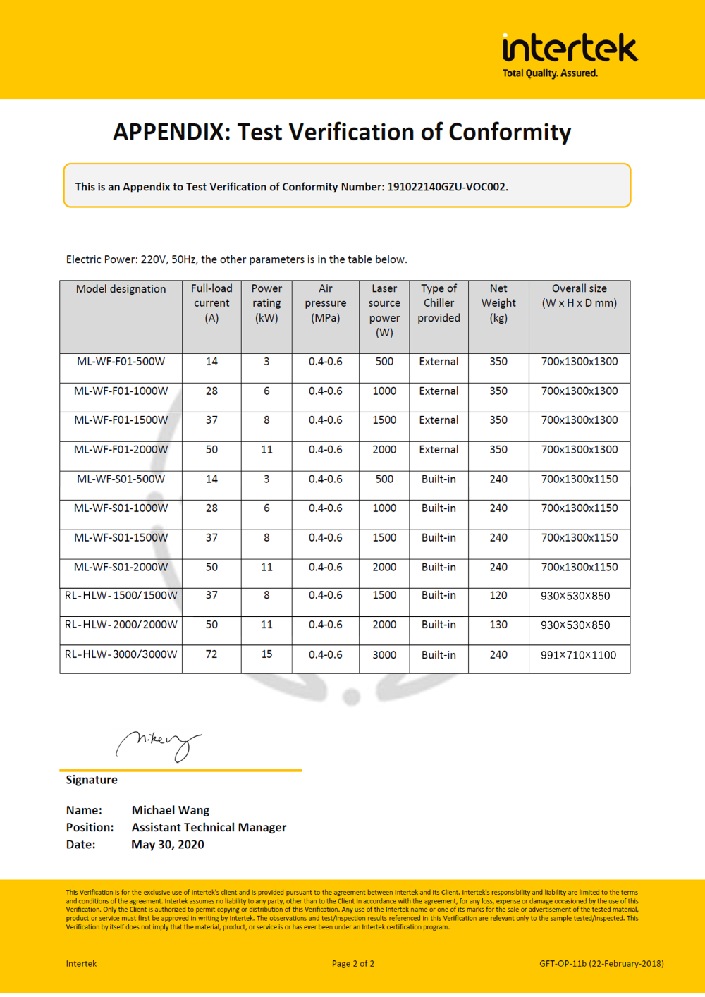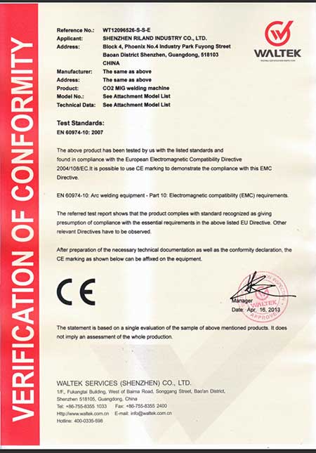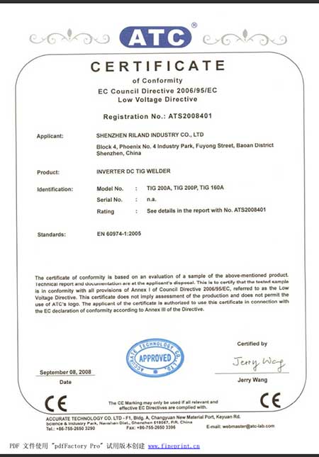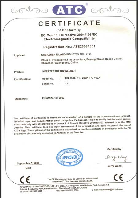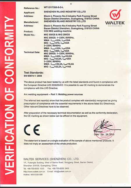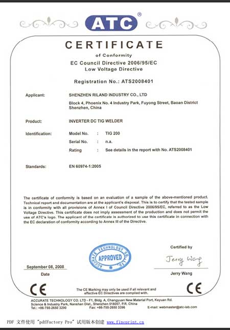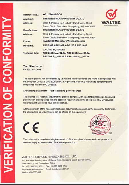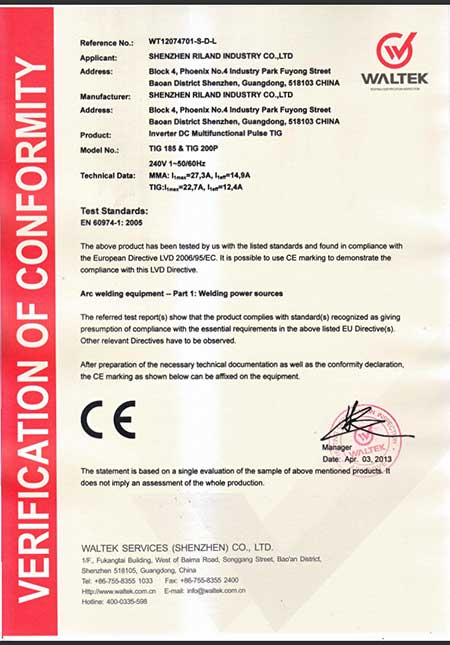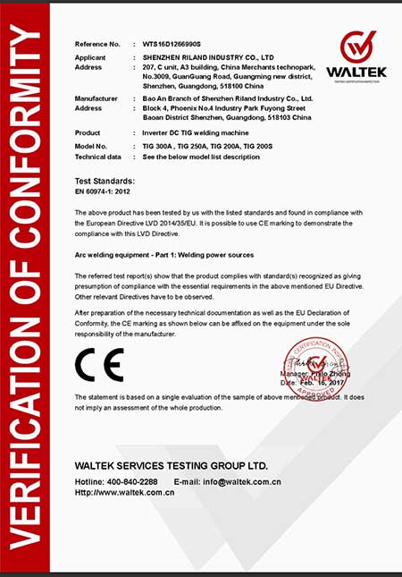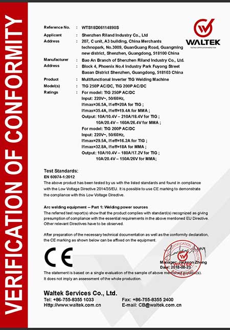 เอกสารผ่านการทดสอบมาตรฐาน TIG200A-TIG200P-TIG160A