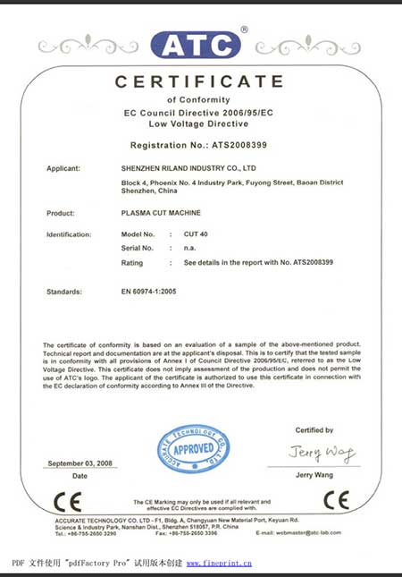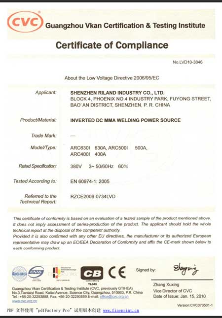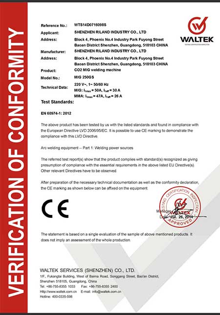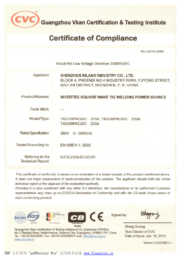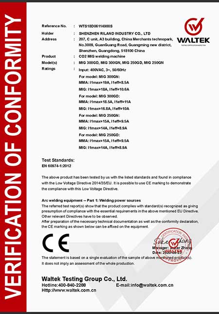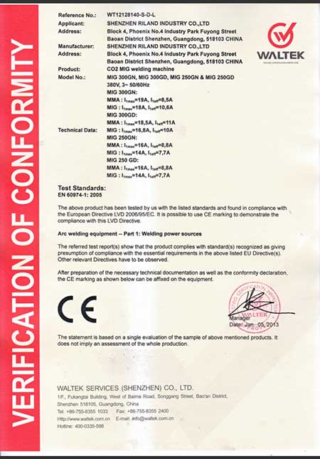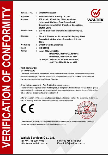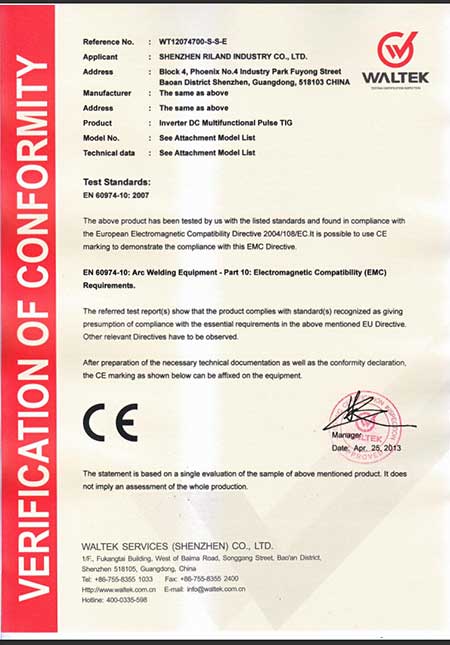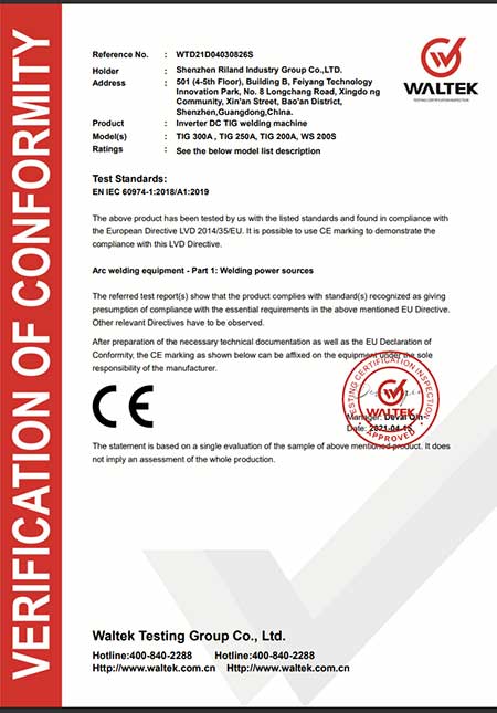 เอกสารผ่านการทดสอบมาตรฐาน TIG315P-ACDC TIG250P-ACDC TIG200P-ACDC