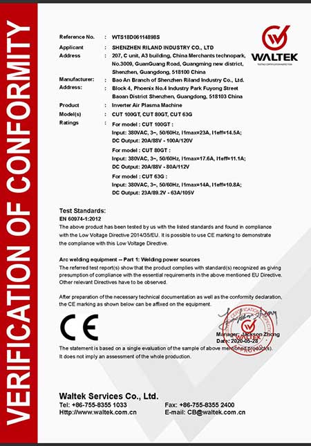 เอกสารผ่านการทดสอบมาตรฐาน CUT100GT-CUT80GT
