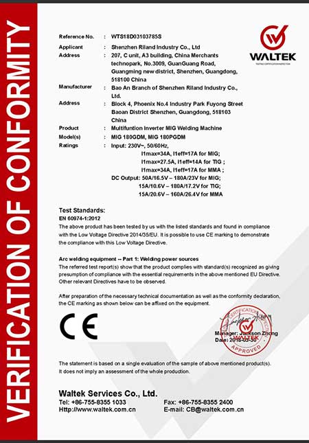 เอกสารผ่านการทดสอบมาตรฐาน MIG-EN60974-10