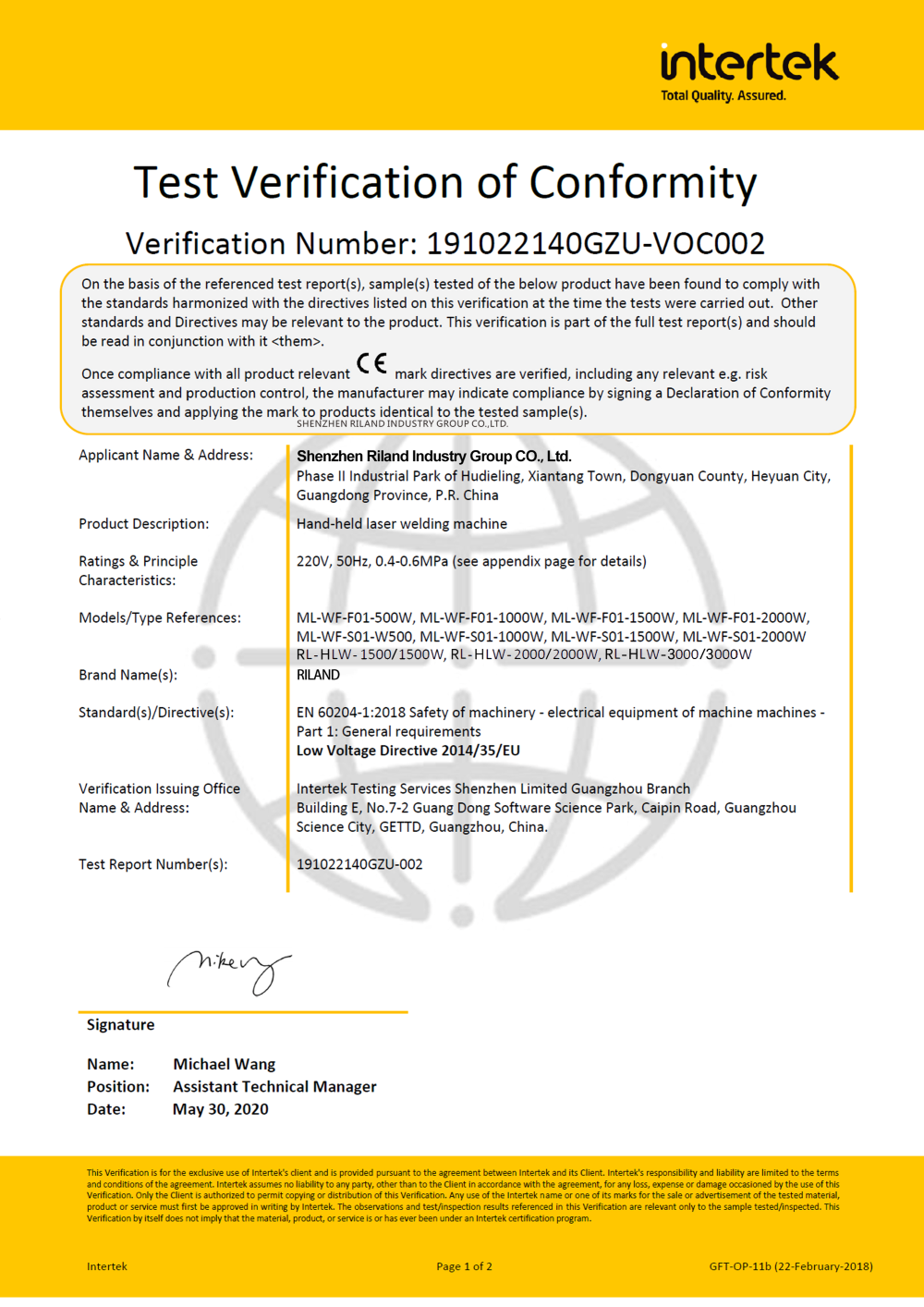 Shenzhen Riland Intelligent Equipment Co., Ltd.
