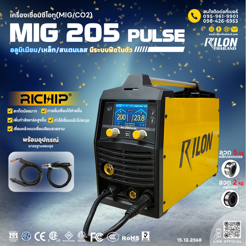 เครื่องเชื่อมซีโอทู RILON MIG 205 Pulse ซึ่งมีระบบฟีด และ ระบบ RiCHIP เพื่อให้การเชื่อมง่ายขึ้นต่อการใช้งานไปในตัวที่ศูนย์บริการจัดจำหน่าย RILON Thailand