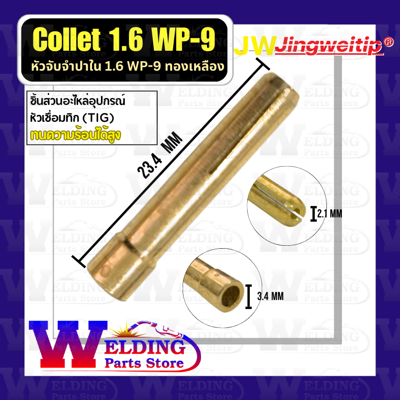 หัวจับจำปาในขนาด 1.6 สำหรับหัวเชื่อม TIG รุ่น WP-9 ทองเหลือง สามารถทนความร้อนได้สูง
